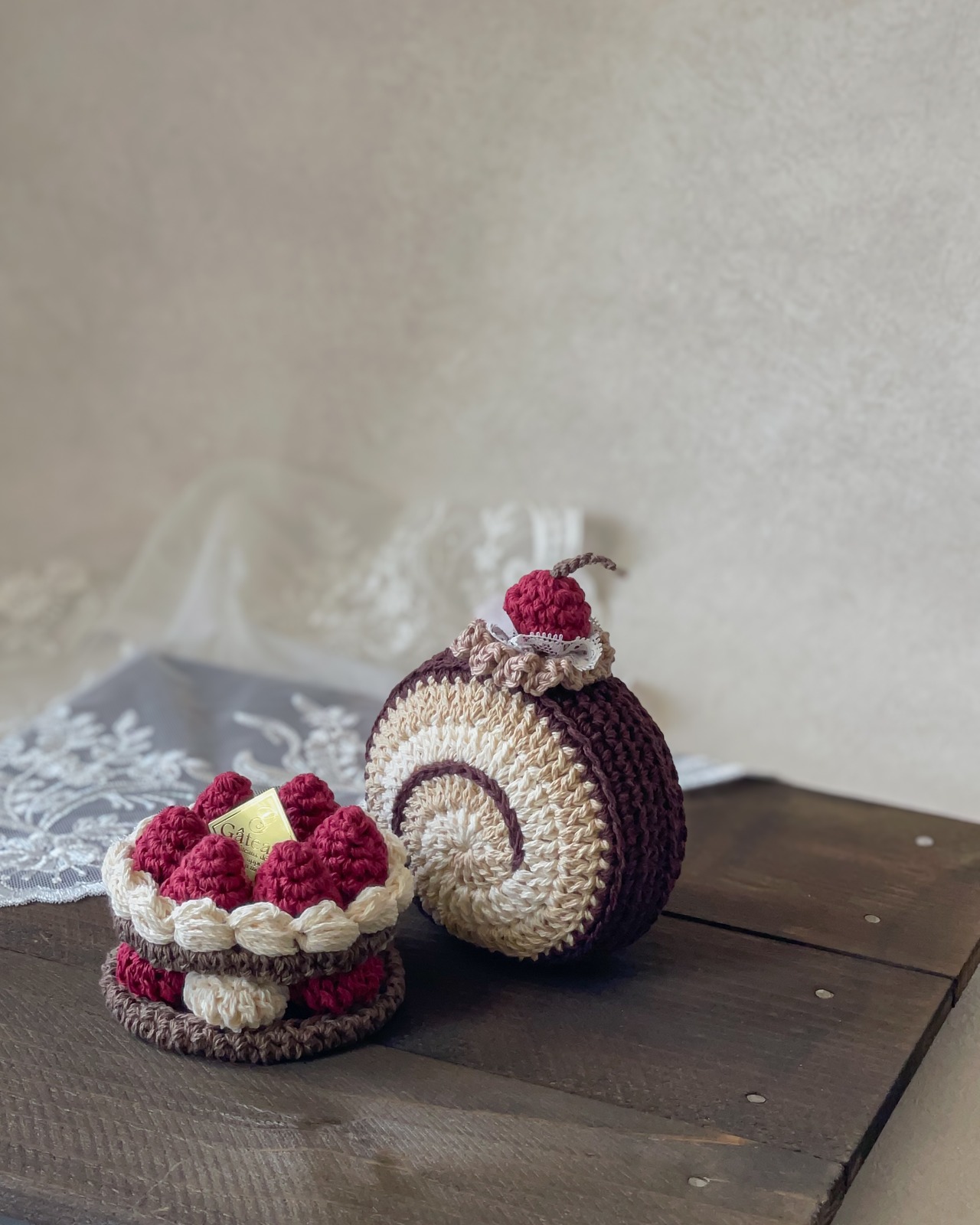 お誕生日や記念日など、特別な日のケーキをイメージして編み上げました。